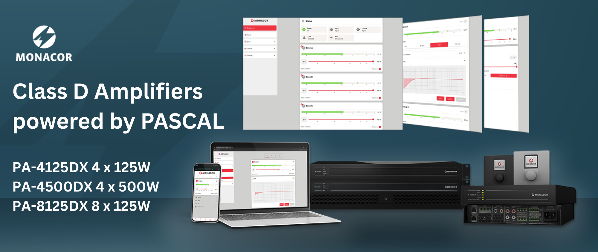 Introducing the new PA-4125DX from Monacor, a 4-zone multifunctional mixing amplifier with additional functions powered by PASCAL. For your multi-room...