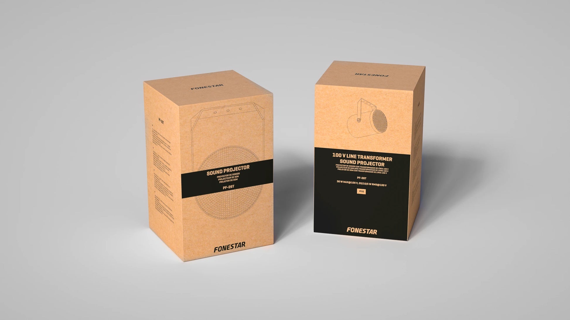 The Fonestar PF-26T is a Unidirectional Sound Projector designed for public address and background music in 100 V line installations, suitable for both indoor and outdoor use due to its robust, weather-resistant construction.