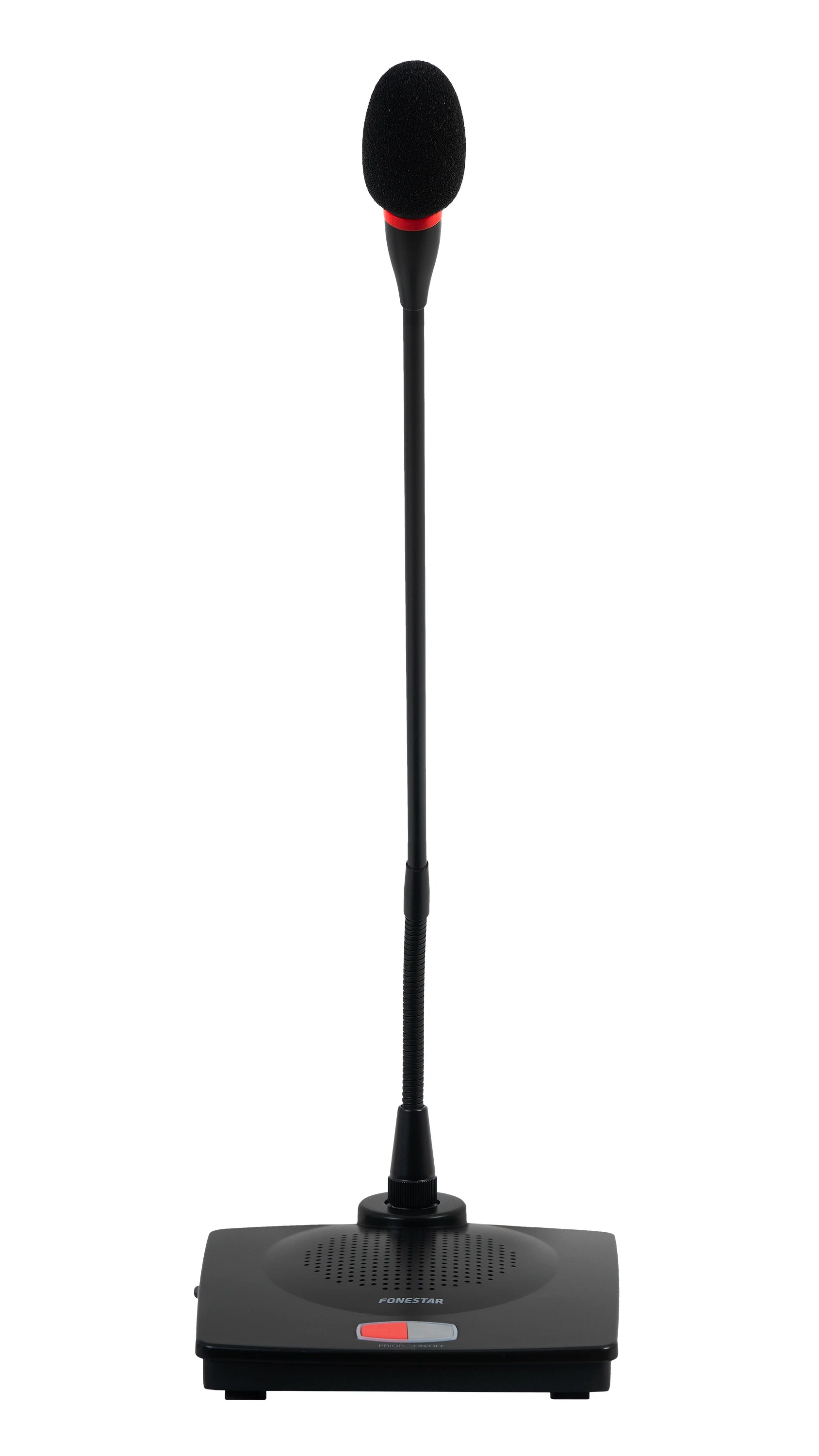 The Fonestar SCF-560P is the Chairman's (President's) desktop microphone unit designed for use with the SCF-550 amplified conference system. It provides the necessary authority and controls for the Chairman to manage the meeting.