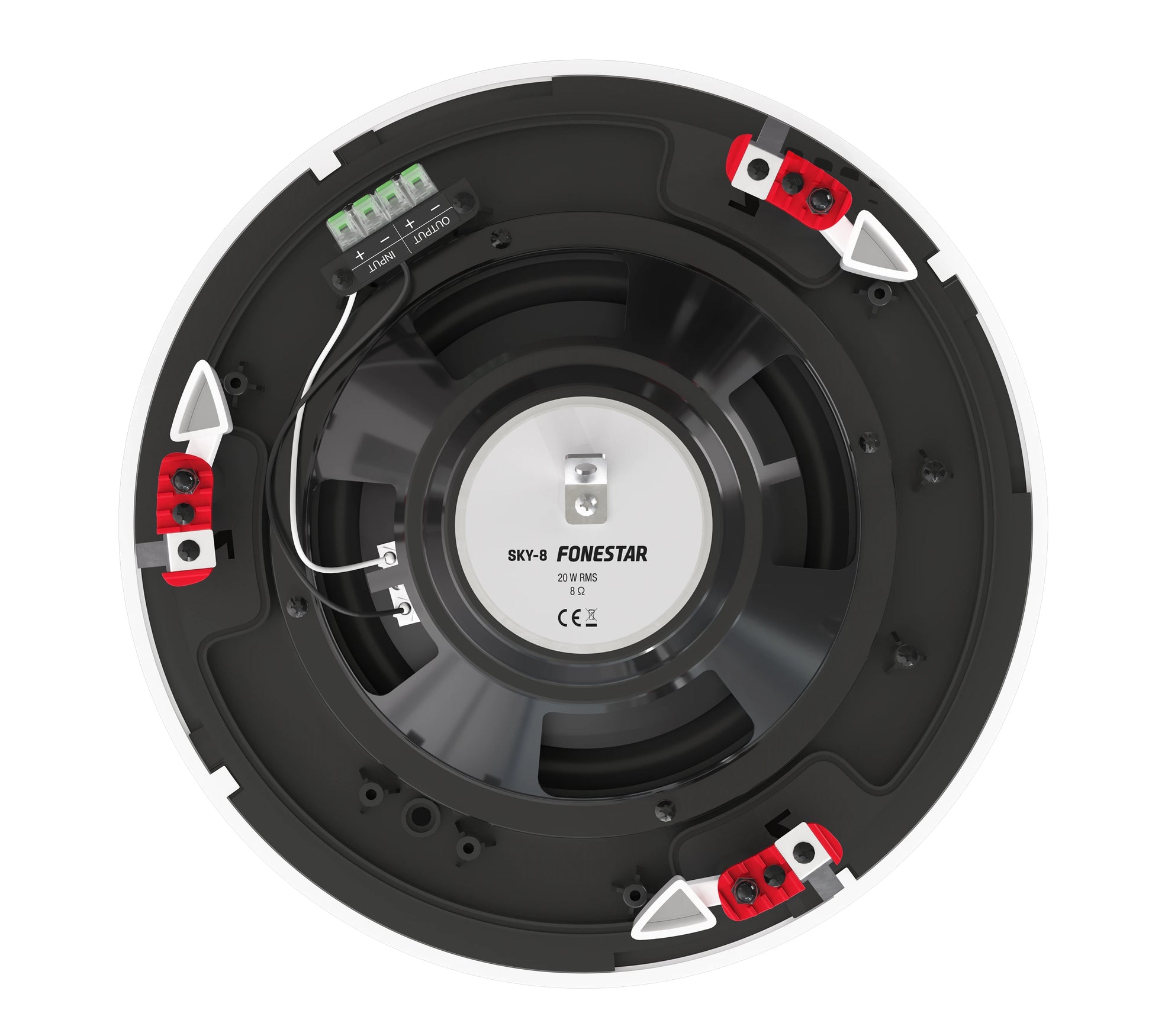 The Fonestar SKY-8 is a high-performance, low-impedance ceiling loudspeaker designed for professional sound installations that require robust quality and an unobtrusive aesthetic. It is the larger version in the SKY series.