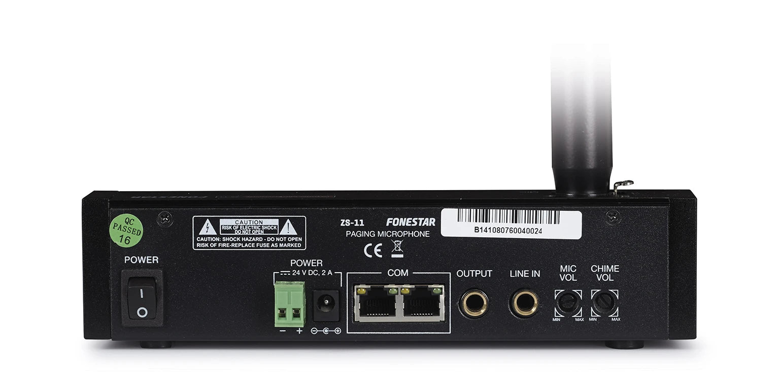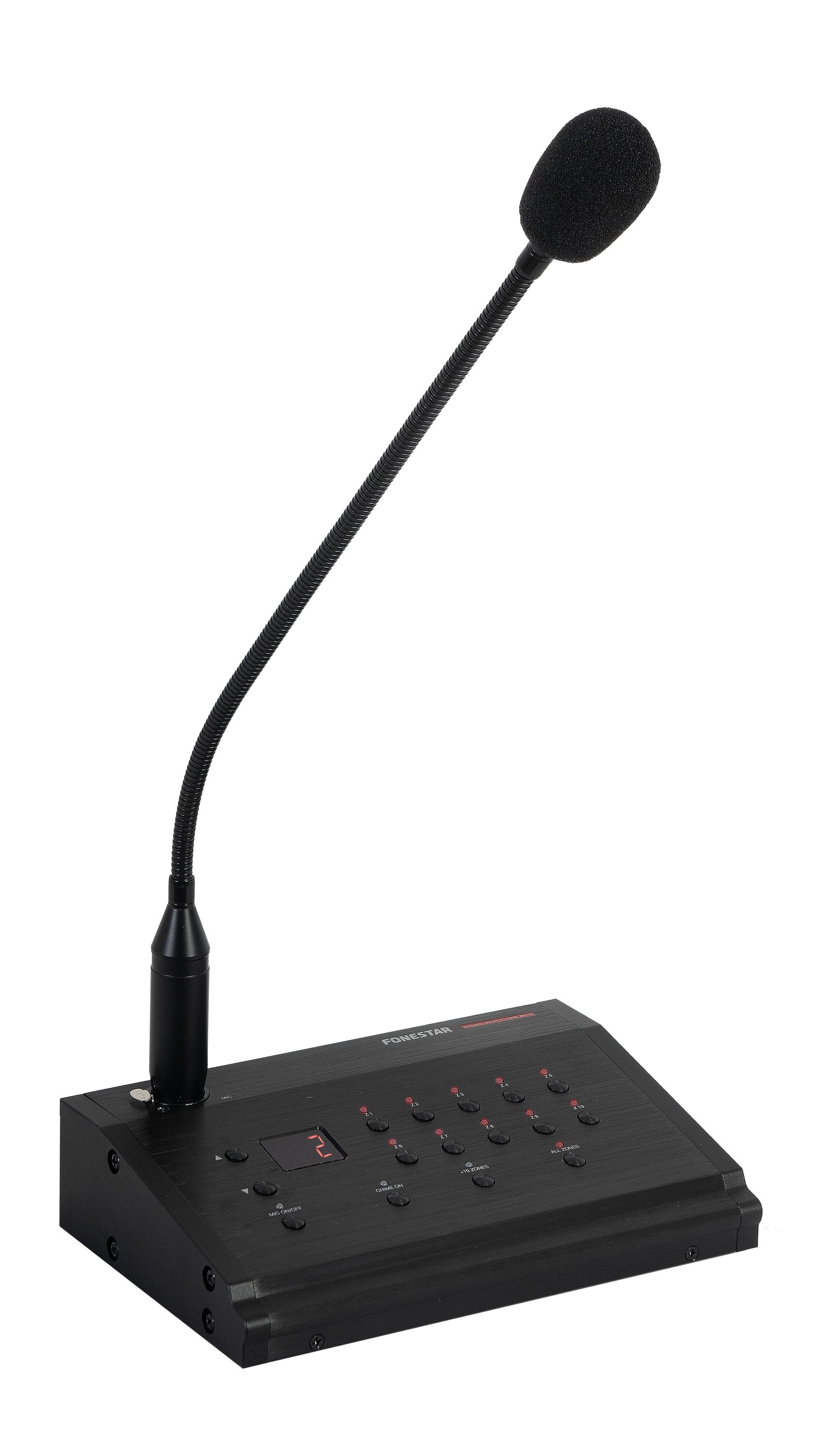 The Fonestar ZS-11 is an essential component for any comprehensive Public Address (PA) and background music system, offering precise, multi-zone paging capabilities. Designed for use with the ZSC-1110 10-zone switching unit, this desktop microphone allows for crystal-clear announcements across large facilities.