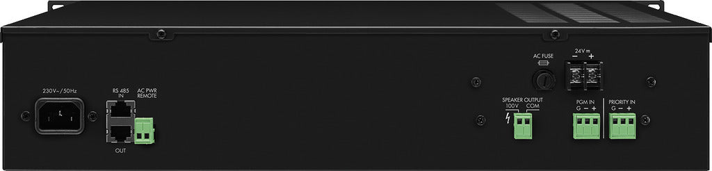Dual Power Operation: Supports both mains operation (230 V/ 50 Hz) and 24 V emergency power operation, ensuring continuous functionality for critical applications like emergency announcements.
