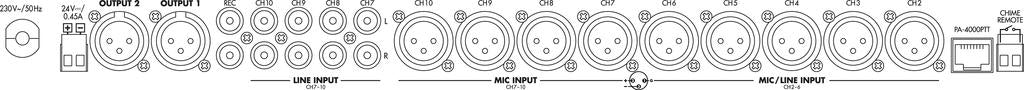 Push-to-Talk (PTT) connection (RJ45) with a priority circuit (suitable for the optional PA-4000PTT microphone).
