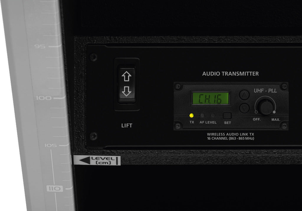 Electric Height Adjustment: Effortlessly adjust the lectern height from 85 cm to 125 cm with the variable electric control, ensuring ergonomic comfort for every speaker.