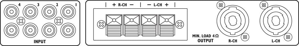 4 x RCA L/R 1 x SPEAKER L/R 1 x spring-load. speaker term. L/R |