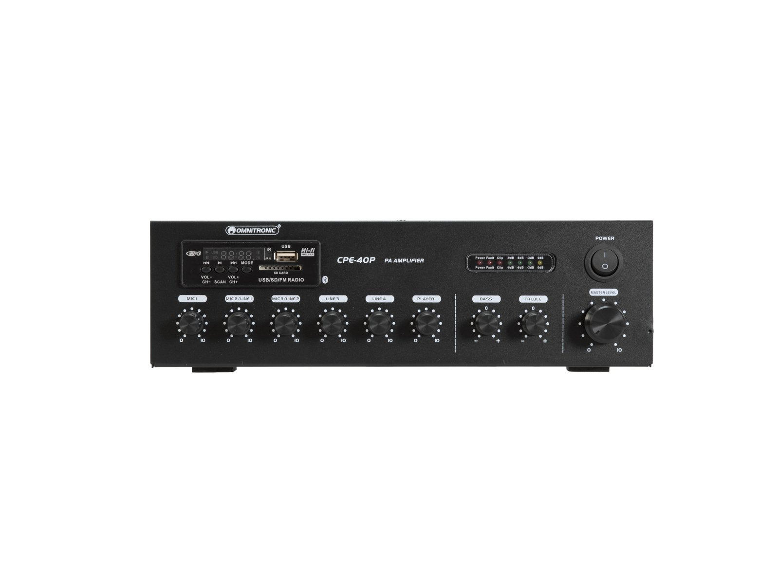 PA mono mixing amplifier with MP3 player and IR remote control, Bluetooth, 40 watts