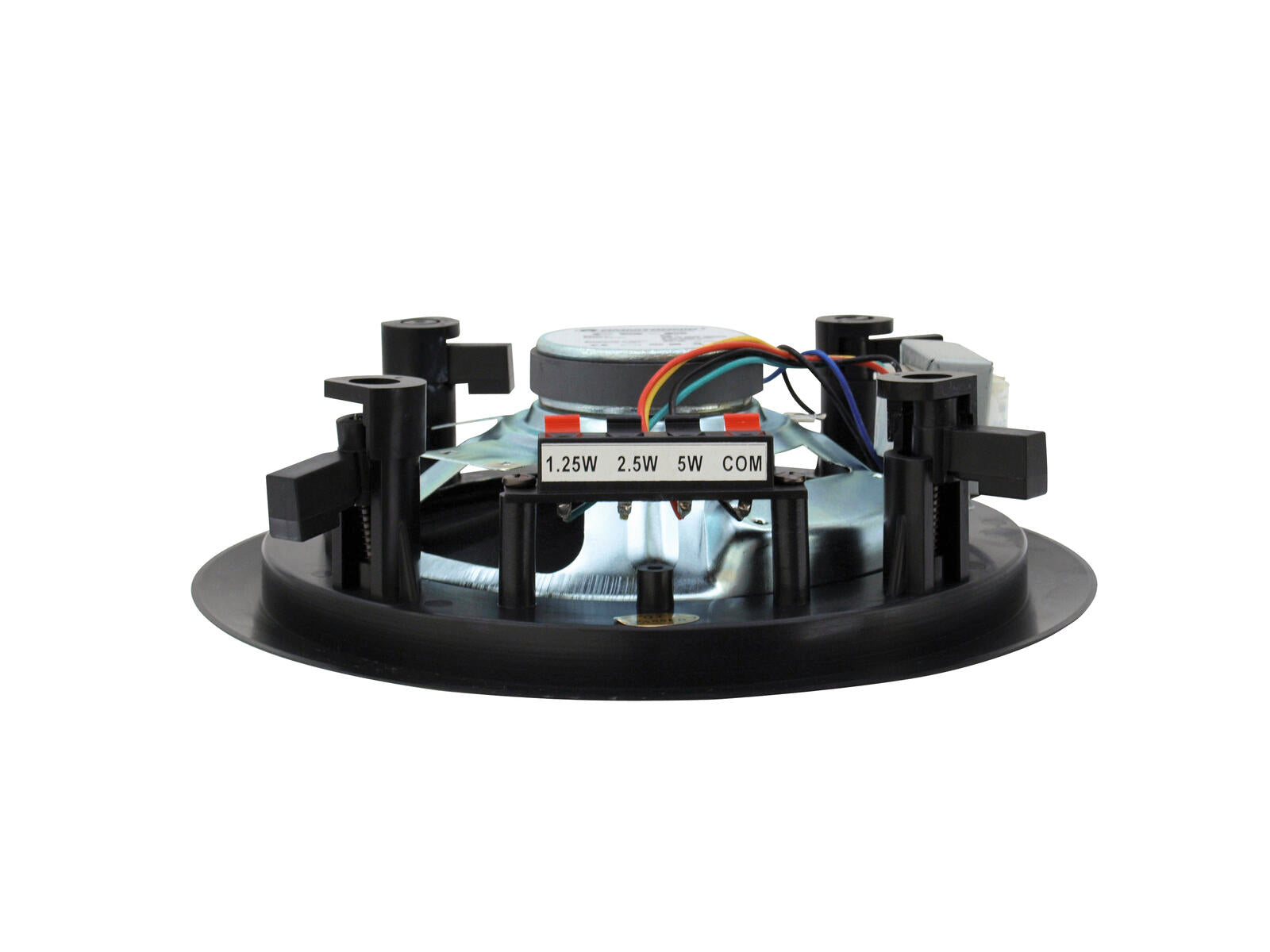 The OMNITRONIC CS-6 in black is a compact, full-range, flush-mount speaker designed for easy integration into 100V public address (PA) systems. It delivers clear and reliable audio for essential functions like announcements and background music in various indoor commercial settings, including installations, restaurants, hotels, and sports facilities.