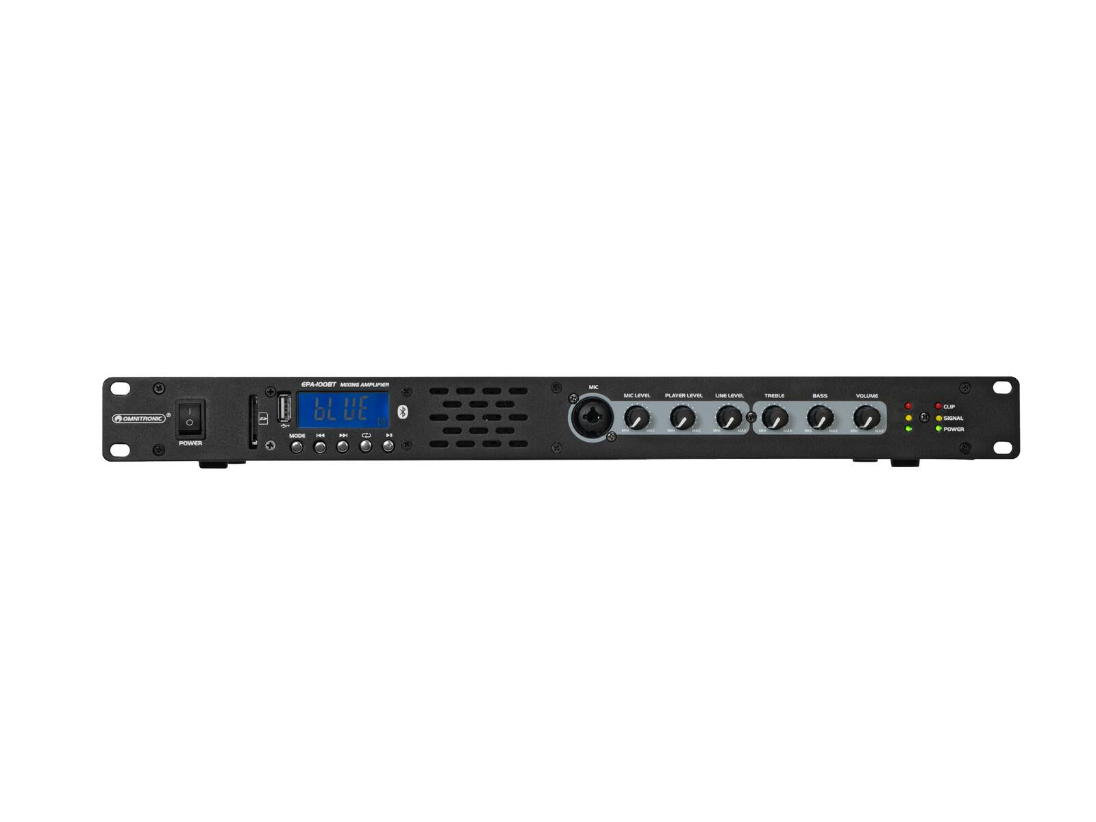 The OMNITRONIC EPA-100BT is a compact and efficient 1 U flat stereo mixing amplifier, perfectly suited for permanent commercial sound installations. Delivering a streamlined solution for background music and announcements, it's ideal for restaurants, retail stores, gyms, and trade fairs.