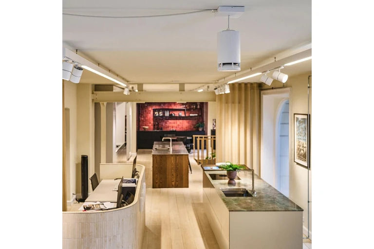 Spottune OMNI Cord Wireless Speaker   The Spottune OMNI Cord is a wireless, omnidirectional speaker designed for ceiling suspension, particularly suitable for environments with elevated ceilings, and is powered via...