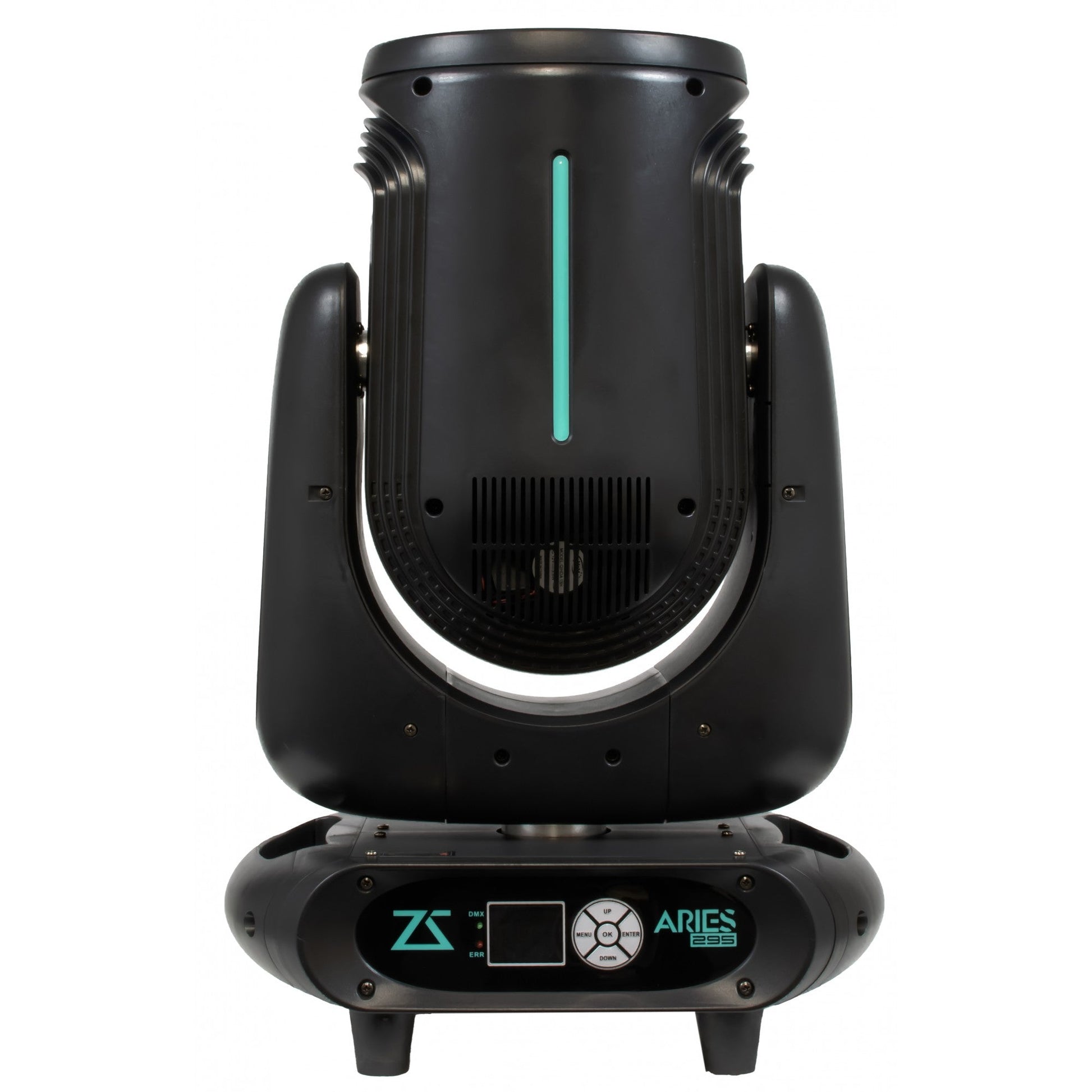 ARIES295 is a compact and fast-moving moving head with a 295W discharge lamp, equipped for all uses. It features a color wheel with 13 colors + open, gobo wheel with 11 fixed gobos, motorized focus, rainbow filter, and double stackable circular prism.