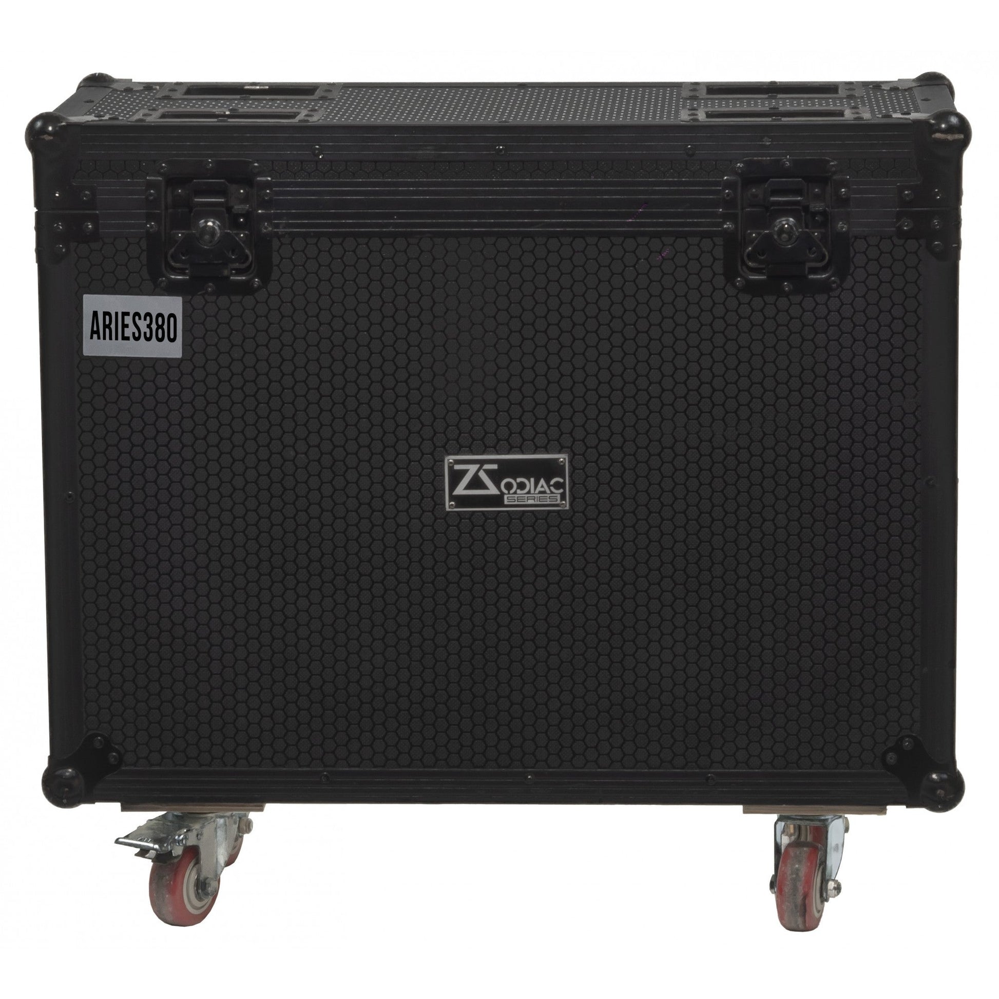 Sturdy flight case made of birch plywood coated with matte black scratch-resistant covering. Exclusive and functional design, accommodates 2 ARIES380 machines. 2 handles for transportation (1 on each side), 4 swivel wheels (2 with brakes), 4 grooves on the top for stacking multiple units on top of each other.