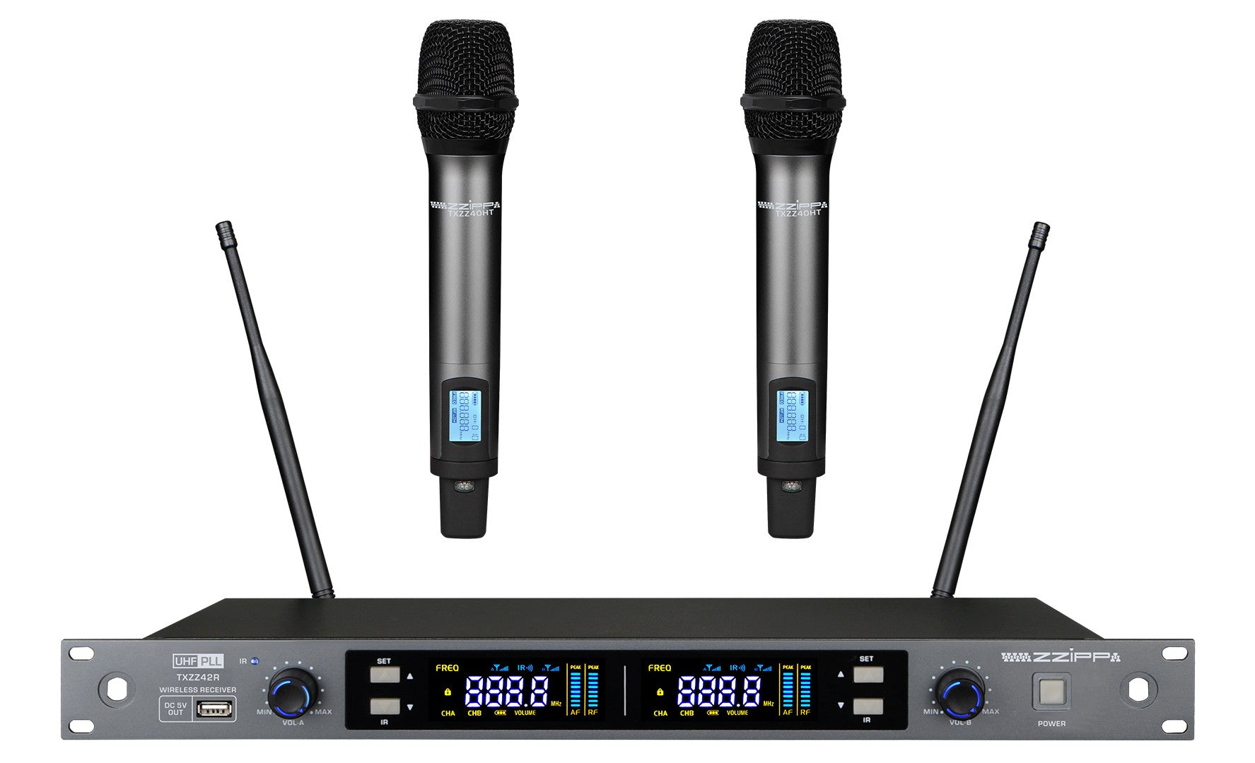 TWIN UHF RADIO MICROPHONE SET with 48 selectable channels - 606-630 MHz (Channel 38-40)